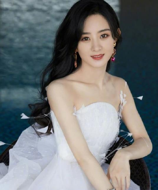 花仙子设计抹胸轻蔓纱立体白裙,飘逸之感搭配赵丽颖的倾城美貌,美出了恍如天人之感。