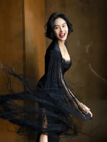 黑色流苏蕾丝衣裙,最能彰显气质和好身材,朱茵一袭黑色流苏塑身长裙,傲人的胸部呼之欲出,甚美!