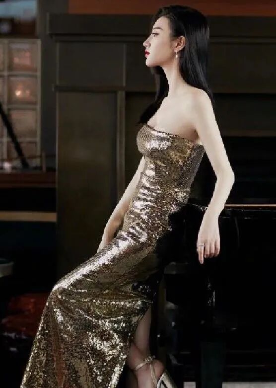 肤色胜雪,让景甜加持人鱼造型抹胸鎏光裙视觉效果顶级,即便是景甜心思不在凹造型一事上,她依旧美得倾国倾城,非他人可比!