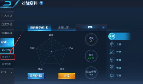 选择游戏之后会弹出对战资料、信誉积分、荣誉资料三个选项。
