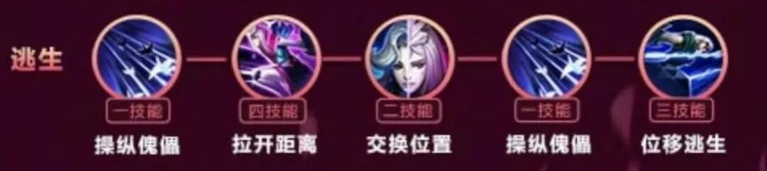 2、逃生连招:一技能—四技能—二技能—一技能—三技能(14213)