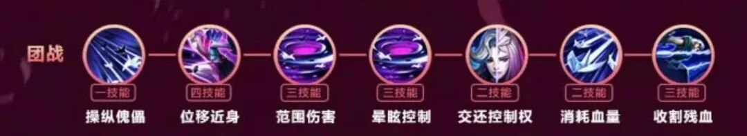 1、团战连招:一技能—四技能—三技能—三技能—二技能—二技能—三技能(1433223)