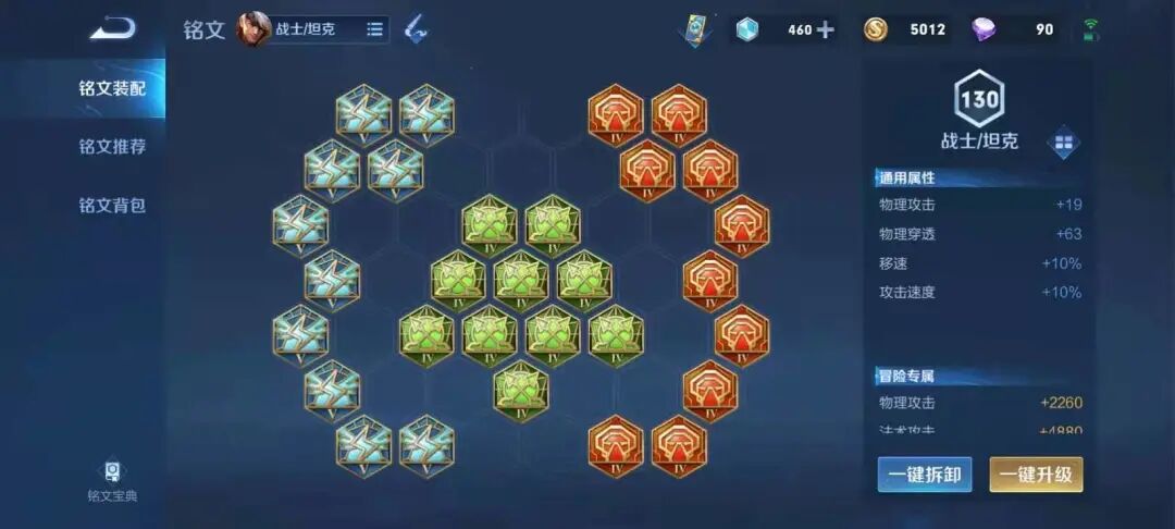 这个铭文的属性是增加移速0.4%,最大生命增加45,每5秒回血增加5.2,这些属性的加成让英雄攻击一流,逃跑迅速。