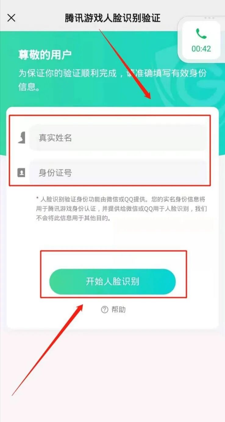 2.手动输入真实姓名和身份证号,然后点击“开始识别”。