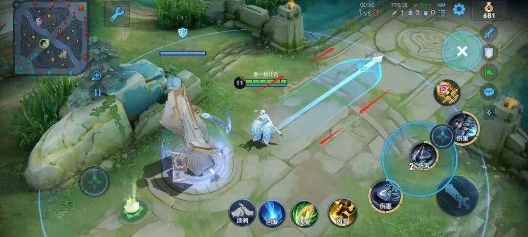 2.第一套飞天技巧:2-3-3-1-3-3-普攻,这是起飞最基本的连招,其优点是位移距离远,能够快速靠近敌方低血量单位,一般用于收割敌方残血落单英雄。