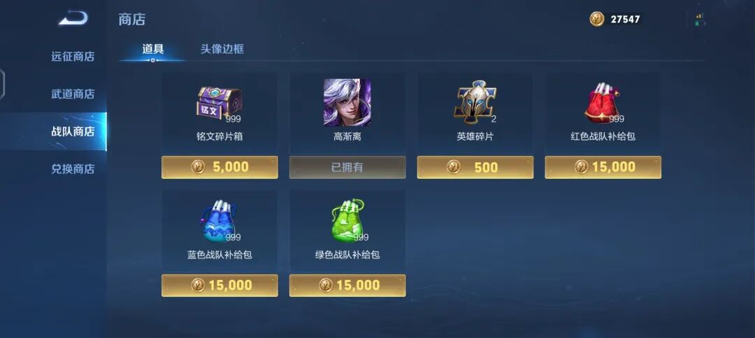 1.参与王者战队赛可以获得战队币,这些战队币可以去购买物品。