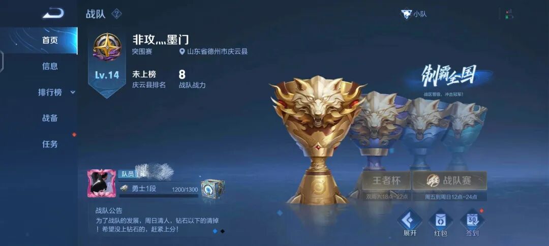 2.参与王者战队赛,如果打的好的话是可以获取相应的奖励的。