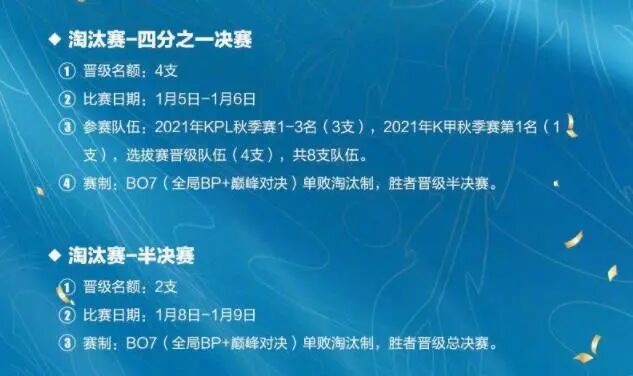 ①【四分之一决赛】2022年1月5日-1月6日,BO7(全局BP 巅峰对决)单败淘汰制。