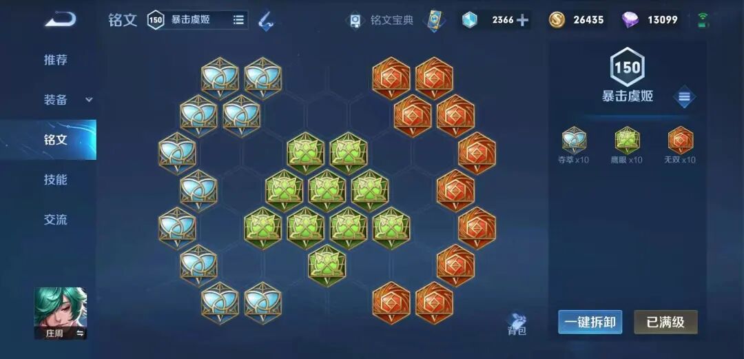2、每个英雄的铭文页共有30个铭文位,所以英雄可以佩戴的铭文最高到150级。