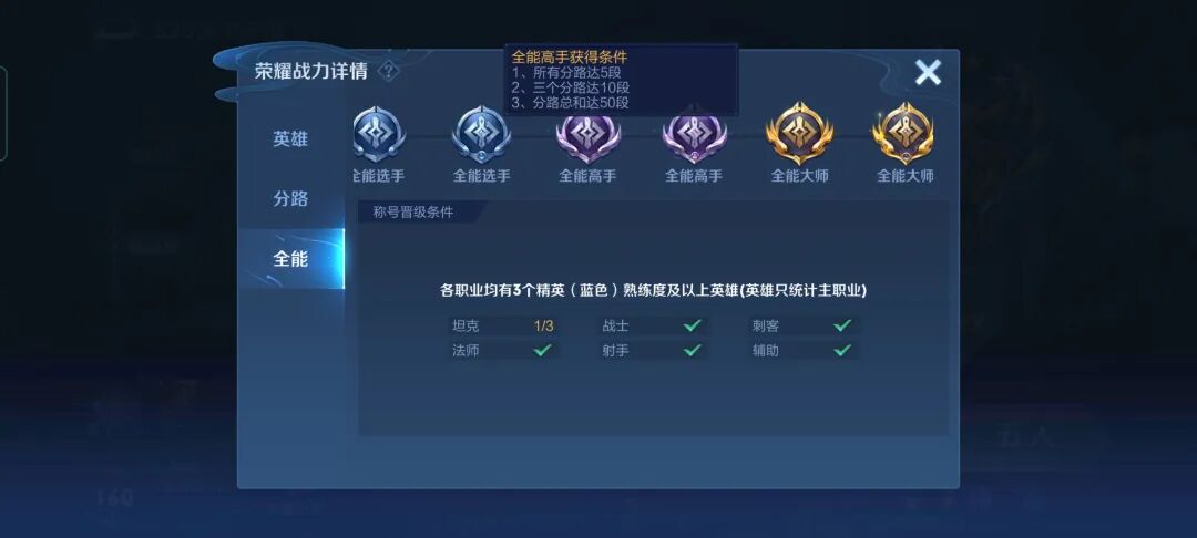 当以上三个要求都满足时,就可以获得全能高手的称号了。