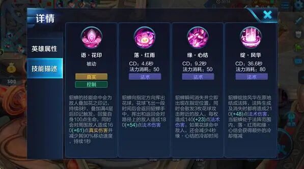 1、貂蝉一直是热门法师中的top,伤害主要来自她的被动。首先一技能两段全命中可以叠加两层印记,二技能命中叠三层,最后大招开启到结束也能叠加一层。