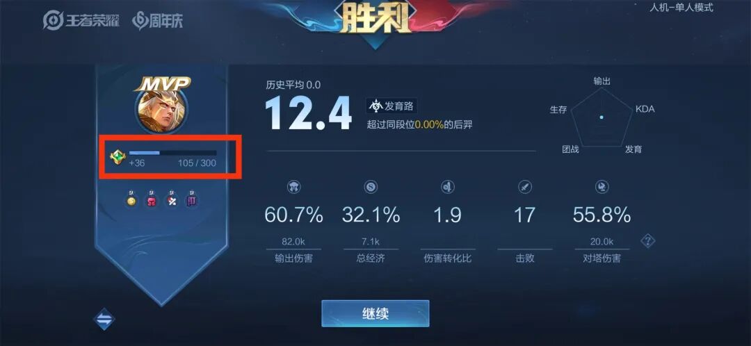2、一场对局中英雄熟练度增加的多少跟局内表现有关,表现越好增加越多,人机可以保证局内表现高,且结束较快,5v5模式单场上限最高,为36,所以最适合刷熟练度。