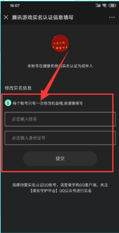 5.接下来需要进入以后就可以修改信息了,每个账户只能修改一次,具体修改方法如下。