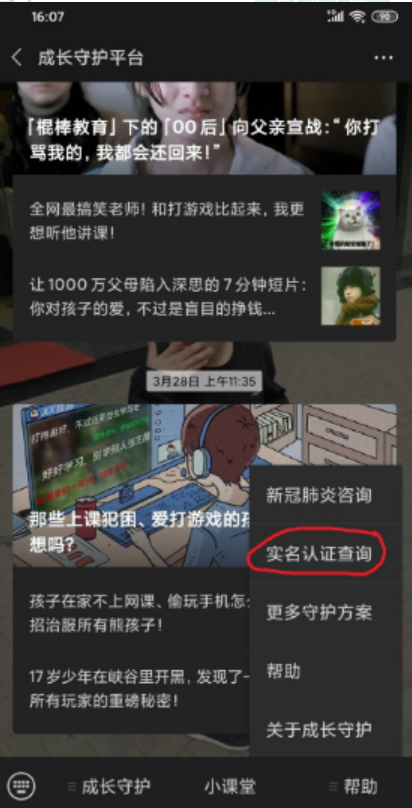 1.首先在微信搜索选择“成长守护平台”公众号。