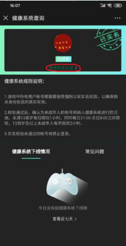 4.接下来需要点击实名认证查询后进入将康系统查询,需要修改的童鞋可以点击头像下方“修改实名认证”。