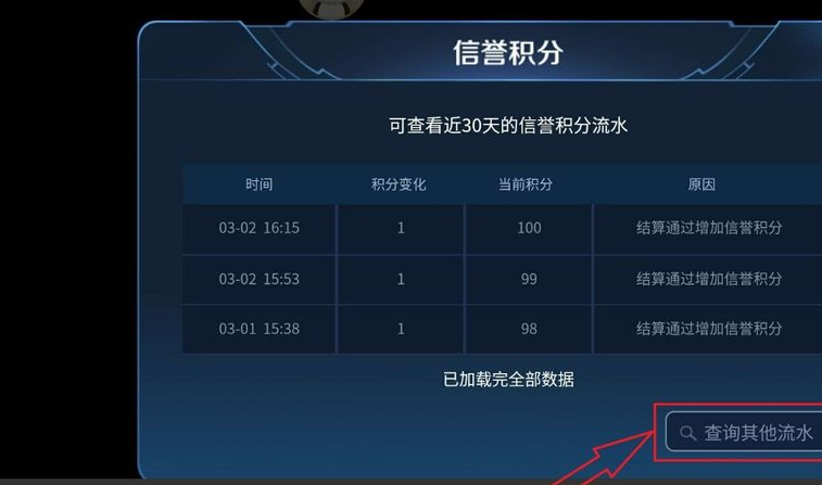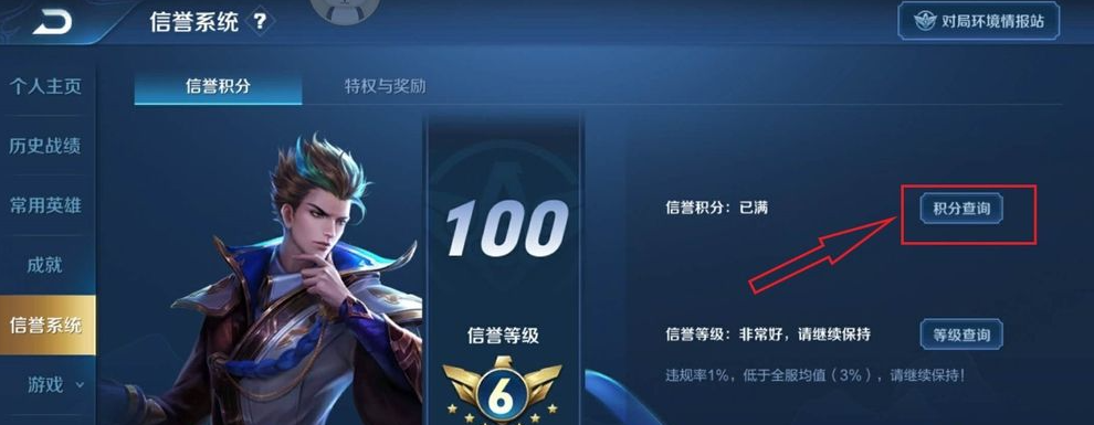 3、在信誉系统页面中,点击右侧上方“积分查询”功能。