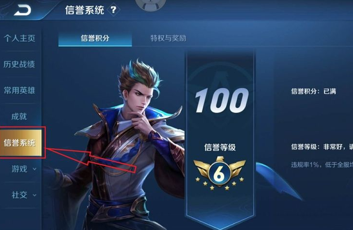 2、进入个人主页后,点击左侧信誉系统一栏。