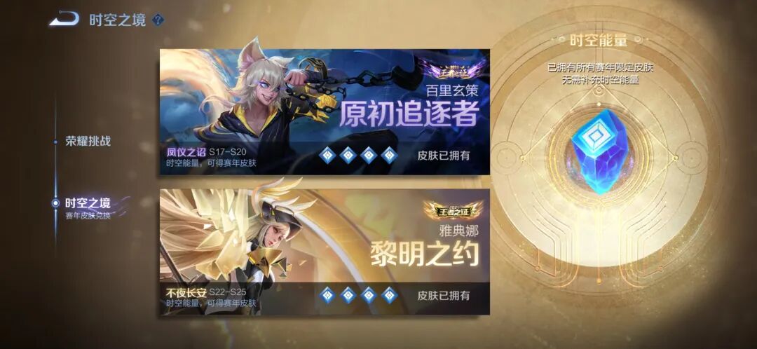 在王者荣耀中,王者之征系列皮肤中目前只有两款,第一个是百里玄策的原初追逐者,第二个是雅典娜的黎明之约,不过这两个皮肤的获得条件是连续四个赛季都达到王者段位才可以获得。