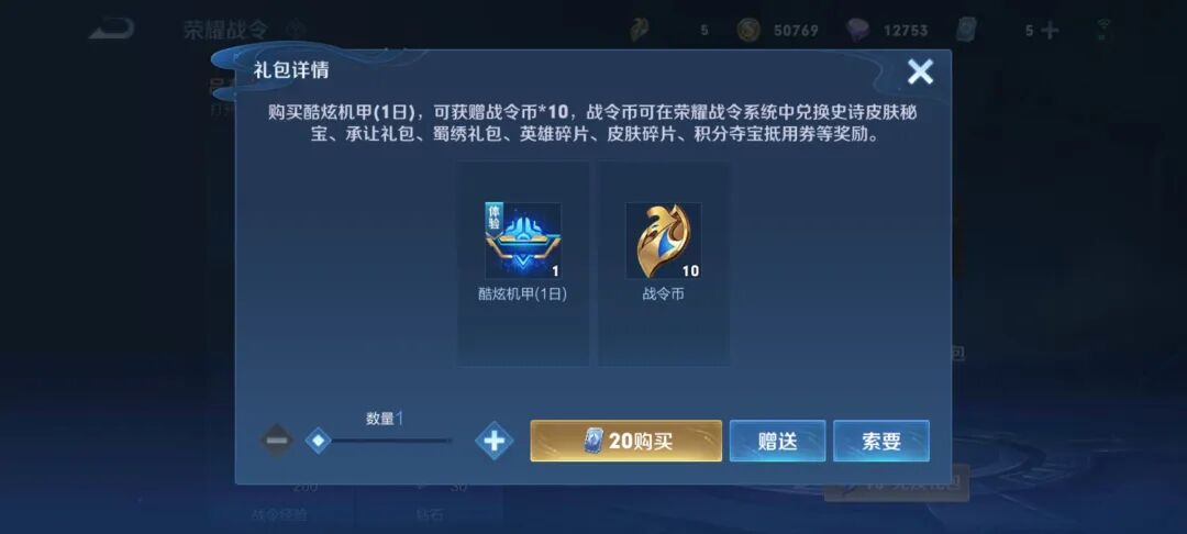 1、1级战令皮肤礼包单个售价15战令币,85次必出皮肤,须消耗1275战令币。