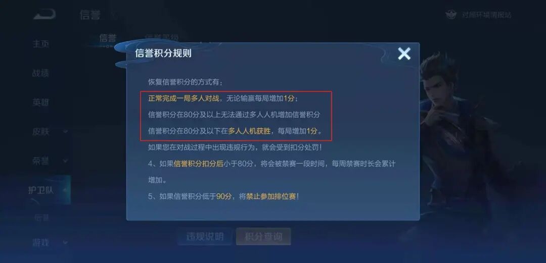 1、王者信誉分需要玩家进行多人对战获得,每参与一场多人对战,无论是输赢都可以获得1分