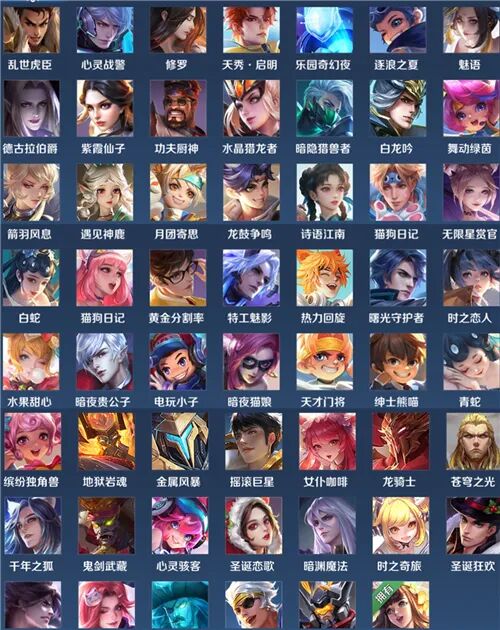 有时之恋人、飞鸢探春、云霓雀翎、黄金白羊座、地狱火、黄金射手座、久胜战神、云鹰飞将、游龙清影、炽阳神光、绛天战神、胖达荣荣、一念神魔、末日机甲、超时空战士、猫影幻舞、乞巧织情、冠军飞将、黄金狮子座、海洋之心、仲夏夜之梦。