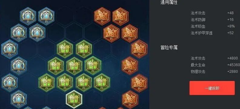10狩猎、10心眼、1凶兆、9梦魇。法术攻击 42,法术穿透 85.6,移速 10%,攻击速度 16.6%,法穿能够提升弈星输出能力,一定攻速让弈星普攻更流畅,利用强化普攻消耗敌人造成更多巨大威胁,移速保证弈星的支援和黏人。