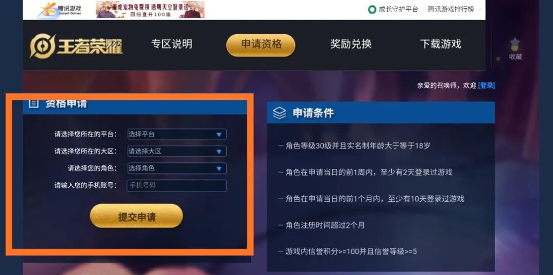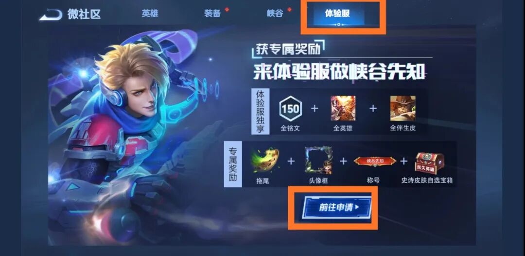 王者荣耀进入体验服需要先申请资格,方法如下。