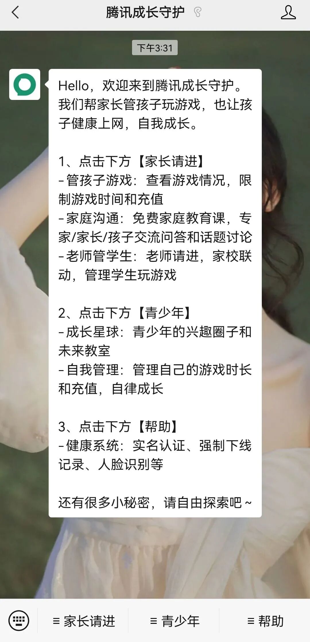 1、使用手机微信,搜索“腾讯成长守护”公众号;关注公众号,进入点击“帮助”选项。有个‘’实名认证查询”,点进去。