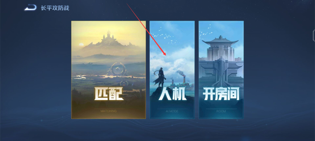 4、点击“长平攻防战”模式以后,最后再点击“人机模式”即可。进入对局以后快速的推完通关,通关以后就可以获得金币。