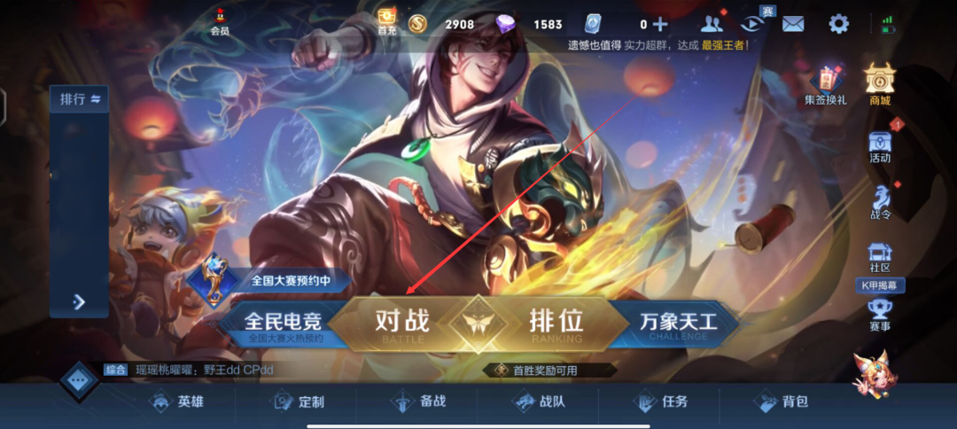 2、使用金币翻倍卡道具以后,游戏玩家点击“对战”选项。