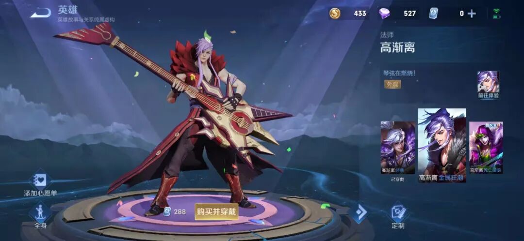 高渐离的皮肤,28个皮肤碎片兑换