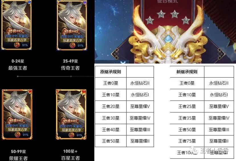 新赛季段位继承发生变化,王者段位一下不变,刺客暃强势上线,马超fmvp皮肤延期上线。