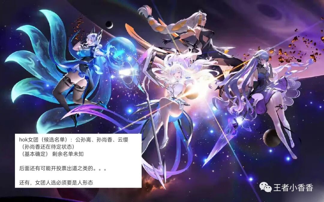 目前,新的女团人选已经确定了公孙离和云缨,孙尚香也是有机会加入新女团的,不过目前还在待定状态。之前国际版AOV中刚刚出了一套女团皮肤,而王者荣耀最近与AOV的联动也是比较多的,因此后续王者荣耀中的女团也可能会有新的皮肤。