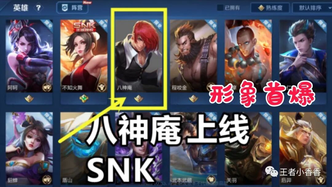 王者荣耀中的第五位SNK系列英雄八神庵已经曝光了,他一头红发,身穿黑衣,其实八神庵很早之前就在游戏中测试过了,技能机制与不知火舞有些相似,但是最终却没能上线。不过,最近又有了八神庵即将上线的消息,八神庵的获取方式应该是与夏洛特一样的,需要一颗王者水晶兑换。