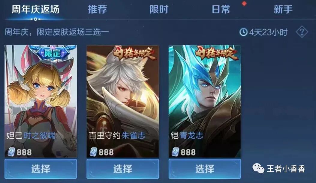 六周年庆典福利升级,每人可以再领500限时点券,28号庄周——高山流水开启兑换,妲己——时之彼端、百里守约——朱雀志、铠——青龙志返场,孙尚香绝美传说皮肤来袭。