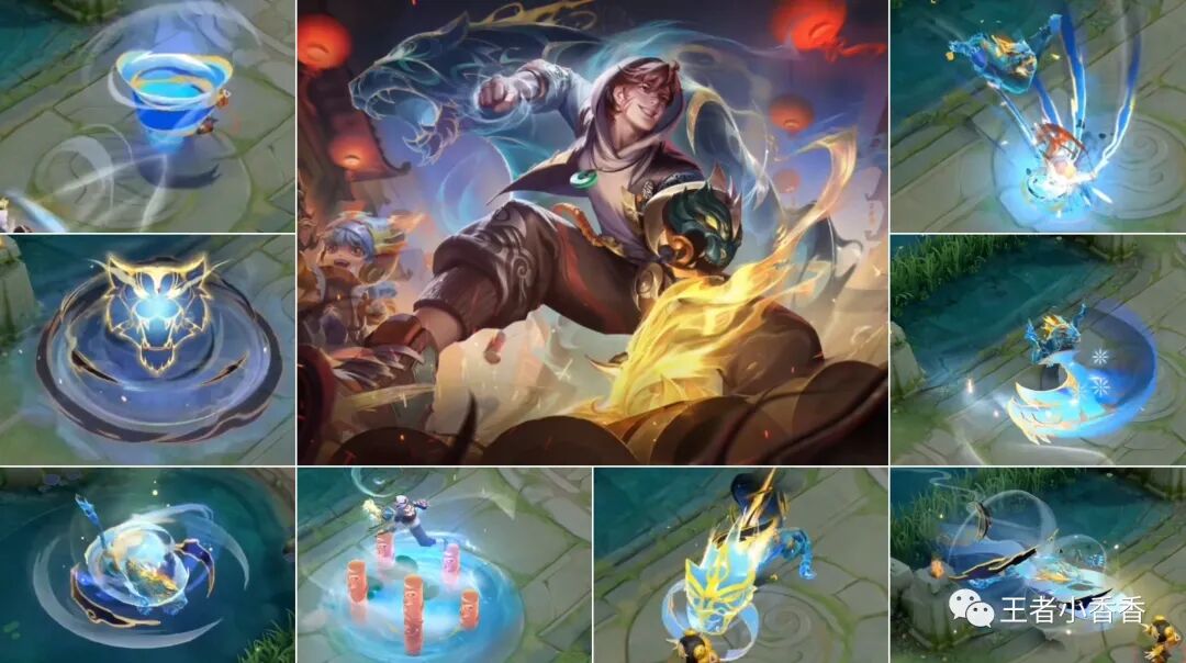 寅虎·赤拳皮肤的技能特效也是非常帅气的,人形态的一技能特效是龙卷风,二技能特效是身上浮现出一个虎头,三技能变成虎形态时周身围绕着靛青色的光波,变成虎形态后的第一击和第二击都是虎爪特效,一技能是虎头特效,二技能是青虎呈螺旋状扑向目标。