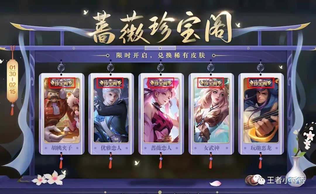 新春期间开启的蔷薇珍宝阁有五款限定皮肤可以选择兑换,而且都新增了珍宝阁标签,孙尚香的蔷薇恋人也是刚重做上线,蔷薇花特效十分好看。