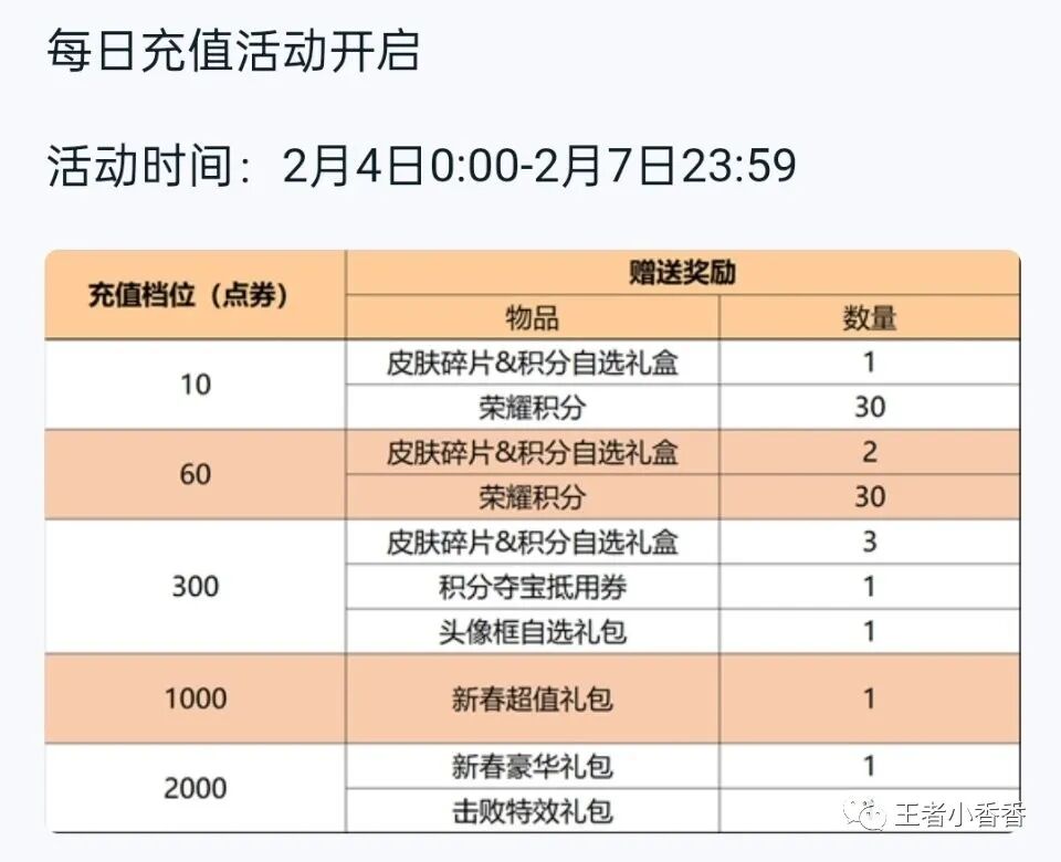 上一次每日充值活动开启时,荣耀积分奖励变少了,也有部分玩家对此表示不满,不过这一次的每日充值活动又把荣耀积分奖励给提升回来了。每日充值活动算是比较良心的充值活动了,不过这次的活动到7号就结束了,因此喜欢的玩家要抓紧时间了。