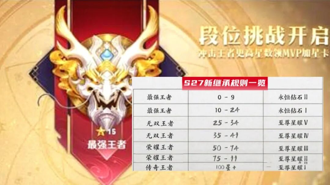 在本赛季王者以上段位进行重新划分,新增了无双王者和传奇王者段位,因此段位继承规则也将进行调整。最新的段位继承规则是在S27赛季才正式实行的,新的段位继承规则对于高段位的玩家是比较有利的,不用再继承到星耀2及以下段位了。