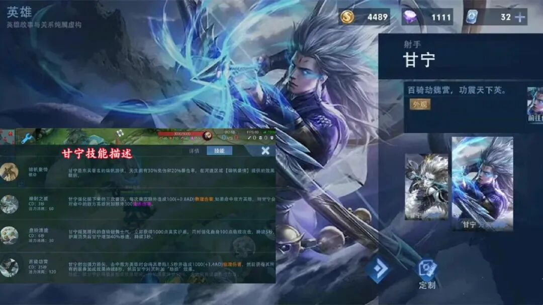 甘宁的一技能开启后,会强化接下来的三次普攻,并对目标造成额外的物理伤害和法术伤害。甘宁的二技能开启后会获得1000点真实护盾,护盾消失后还能获得加速增益。甘宁的三技能可对目标造成减速和晕眩,整体的技能机制还是比较强势的。