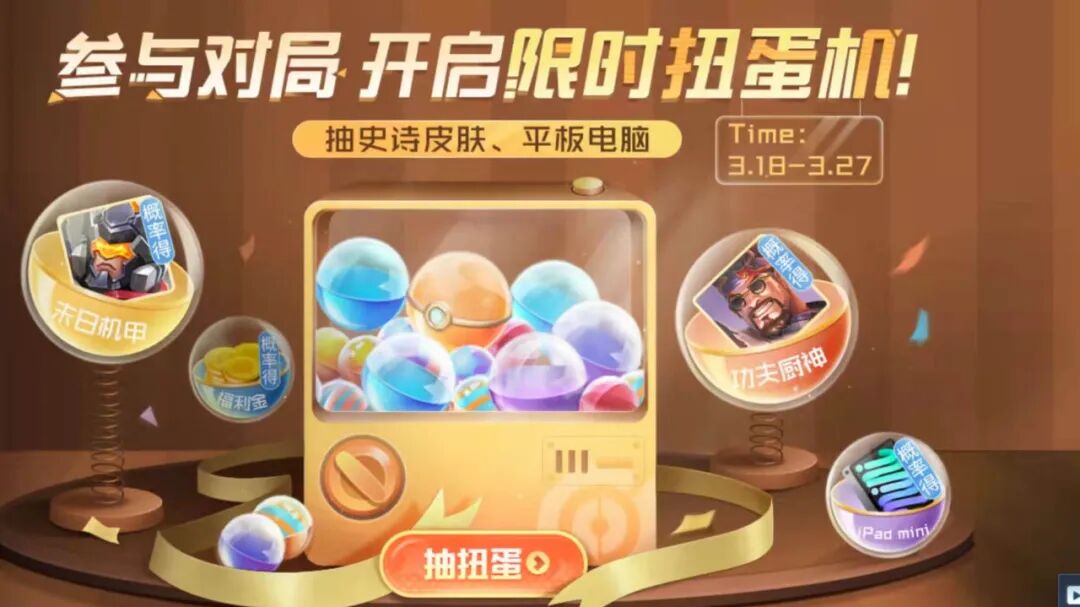 在王者营地开启了一个新的扭蛋活动,每日参与对局就可以抽扭蛋了,有概率获得吕布——末日机甲、程咬金——功夫厨神等皮肤,感兴趣的玩家可以去参与一下了,万一运气好,就直接获得吕布的末日机甲皮肤了。