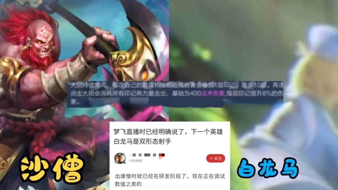 除开新的法师英雄和新的辅助英雄上线以外,还有西游联动英雄也是即将上线到正式服当中,此次即将上线的西游联动英雄分别是沙悟净和白龙马,有大咖爆料沙悟净是一位辅助英雄,而白龙马则是一位射手英雄,基本上也是制作完成,正在调整技能数据当中。