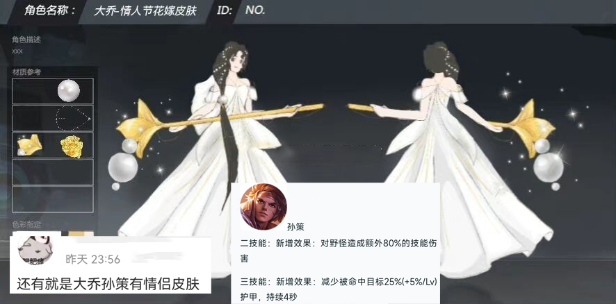 除此以外,孙策和大乔近期在体验服中同时新增了皮肤格子,因此他们两个即将迎来新的情侣皮肤。在520期间会有情侣皮肤上线,孙策和大乔的新皮肤可能就是520的情侣皮肤,不过,也有可能是明年的情人节限定皮肤。
