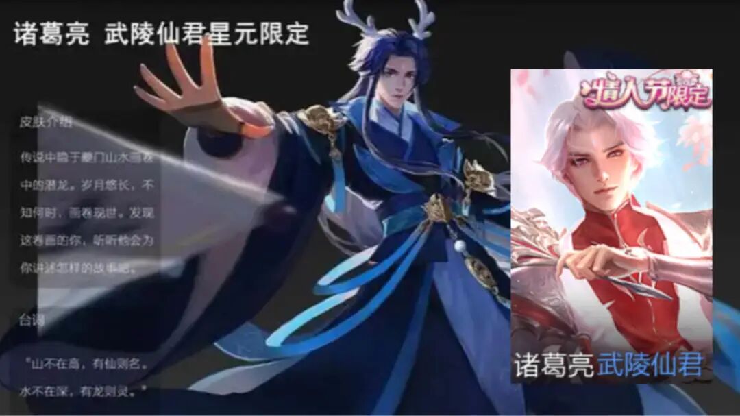 除了武陵仙君皮肤即将返场以外,诸葛亮还有一个好消息,那就是诸葛亮将迎来星传说皮肤了。有人爆料,诸葛亮——武陵仙君皮肤会有一款星传说皮肤,应该是限定星传说皮肤,可能会在武陵仙君返场时正式上线。