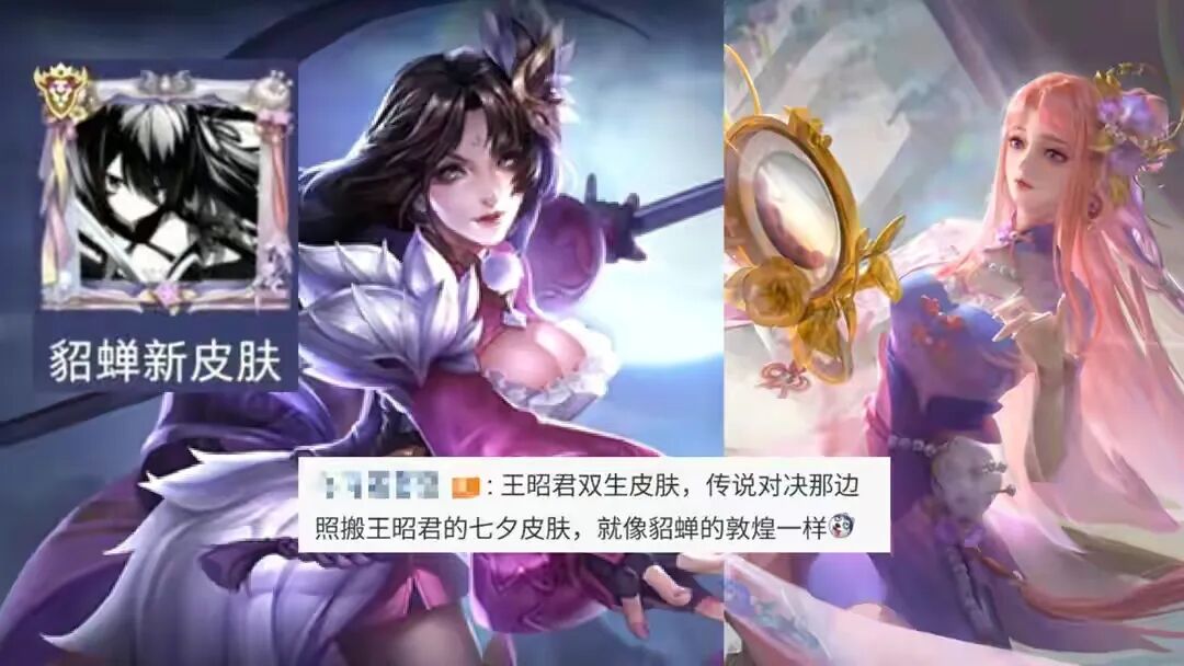 aov中的貂蝉与王者荣耀中的王昭君技能机制一致,而且aov体验服中已经上线了王昭君——乞巧织情皮肤的专属头像框,这意味王昭君的乞巧织情皮肤也将会照搬到aov中去,也不知道后续会不会把aov中的皮肤照搬到王者荣耀中。
