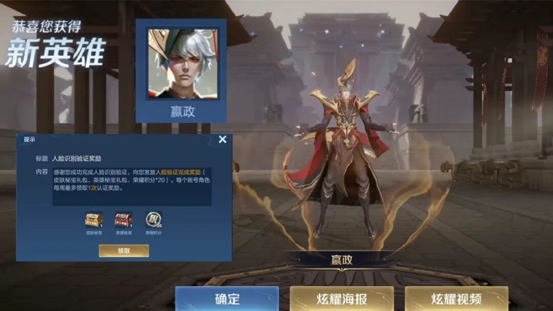 新的人脸识别认证奖励包括永久皮肤皮肤、永久英雄宝箱、荣耀积分等等,皮肤宝箱中有很多热门史诗皮肤,例如百里守约——特工魅影、鲁班七号——电玩小子等等,而英雄宝箱中还包含嬴政,嬴政是需要688点券获取,在这个宝箱中开出来还是非常不错的。