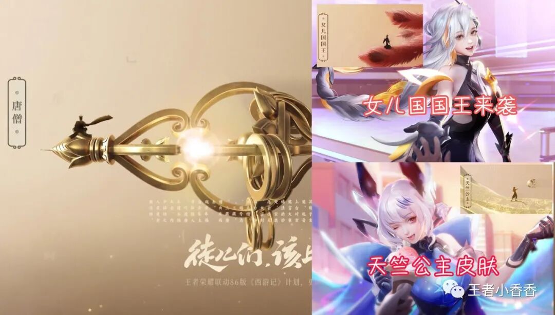 除了孙悟空——孙行者和猪八戒——猪悟能以外,西游记联动系列皮肤还有唐僧、天竺公主、女儿国国王三款皮肤,唐僧皮肤已经确定给到金蝉了,而天竺公主和女儿国国王可能会给到公孙离和甄姬。根据官方给出的彩蛋,天竺公主可能会给到射手英雄,而且天竺公主是玉兔精变的,应该会保留兔子元素,这比较符合公孙离的设定。女儿国国王皮肤剪影可以看出她的裙子与甄姬的十分相似,而且姿势也与甄姬一致,因此这款皮肤可能会给到甄姬。