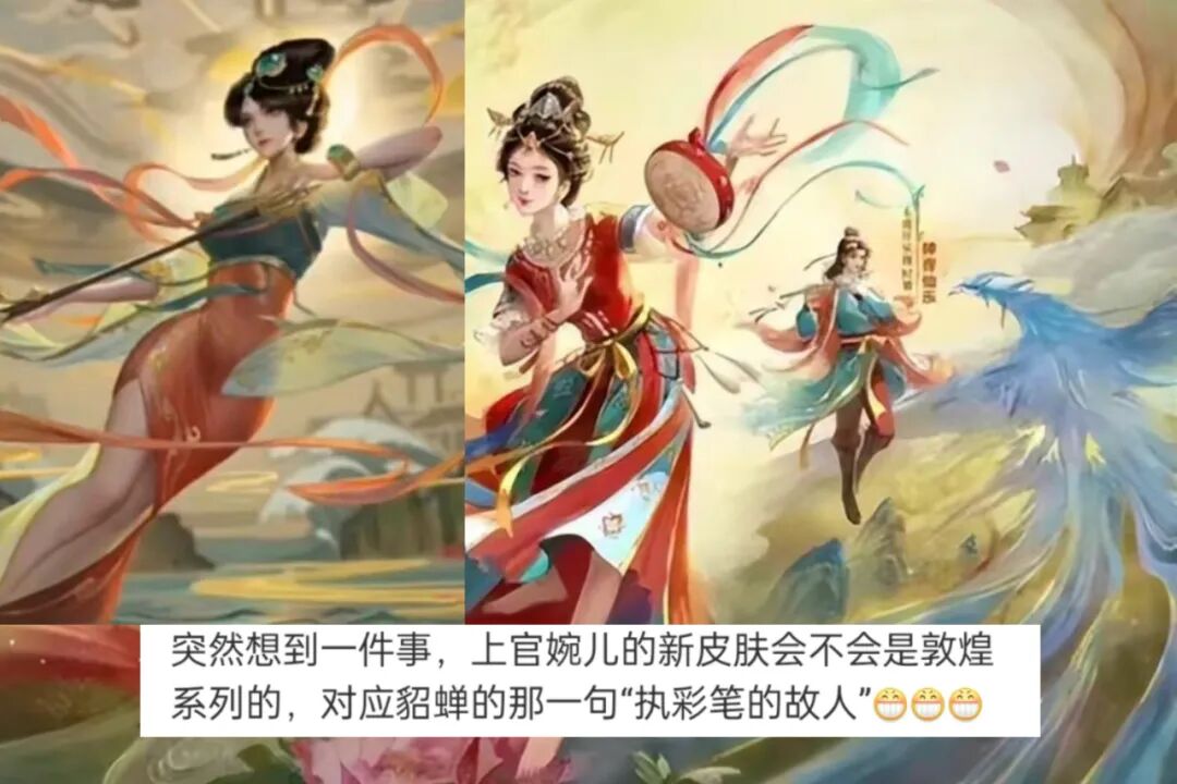 在杨玉环——遇见飞天皮肤上线时,官方发布的预热视频中除了有遇见飞天皮肤以外,还有貂蝉和王昭君,而貂蝉后来也是有了敦煌联动皮肤,因此王昭君其实早就有了敦煌联动皮肤的计划。