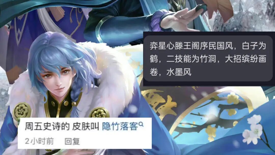 弈星的这款新皮肤的风格是民国风的,弈星身穿小马褂,化身为民国富家公子,应该是挺帅气的。这款皮肤的技能特效是偏水墨风格的,主要采用了竹子的元素,白子的特效是仙鹤,二技能特效是竹洞,三技能特效是缤纷画卷。