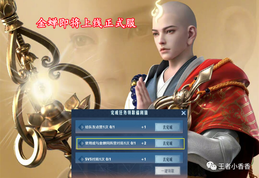 除了贵族7即将上线新皮肤以外,新英雄金蝉也是即将上线正式服,经过几次的重做金蝉的强度已经没有刚上线体验服的强度大了,被动效果也是一削再削,伤害能力也是大幅下降了,很适合上线正式服当中,不会影响其他英雄平衡,而且体验服还曝光了新活动,任务就是需要使用金蝉对局才能够完成,因此金蝉上线正式服也是非常快了。